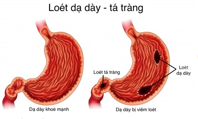 - Loét dạ dày- tá tràng: Vết loét trên niêm mạc làm đau và thường đau khi đói hoặc sau ăn.