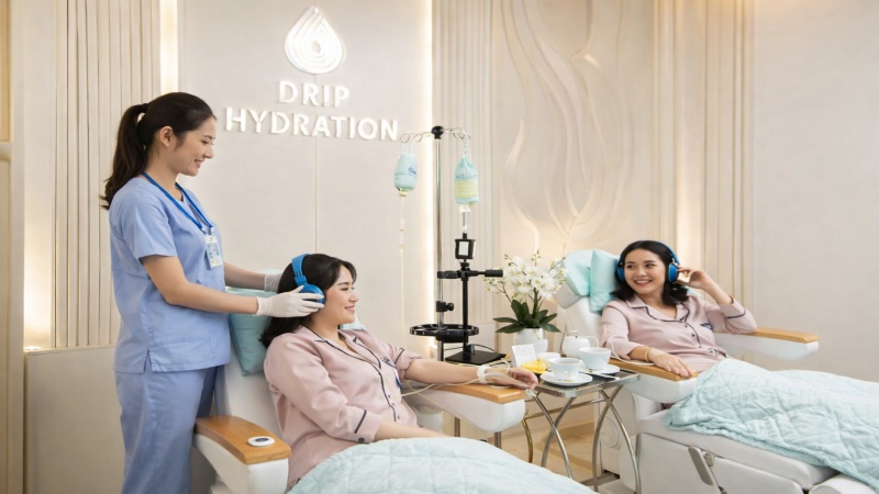 Truyền bổ sung vi chất từ gói truyền dưỡng nhan của Drip Hydration được triển khai tại phòng khám đa khoa tiêu chuẩn quốc tế đạt chất lượng 5 sao, chuyên sâu về chăm sóc sức khỏe chủ động.